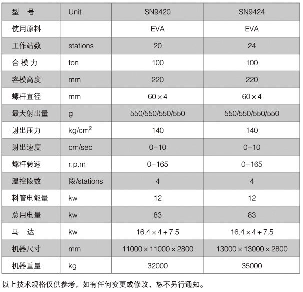 SN-9424全自動回轉(zhuǎn)式塑膠鞋類初坯注射成型機(jī)